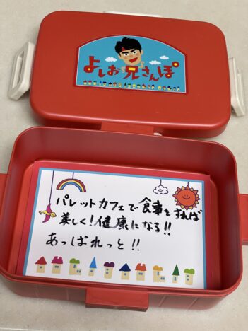 よしお兄さんからお弁当箱のプレゼント🎁いただきました。中のメッセージはこちら🎶