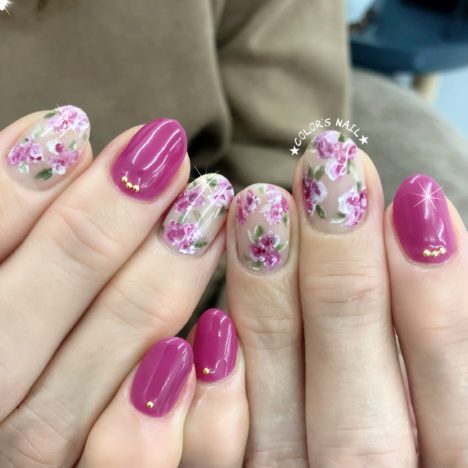 今日のオススメネイルはアンティークフラワーの手描きネイルです💅 外はあちらこちらで桜が満開🌸ですね✨ 綺麗〜