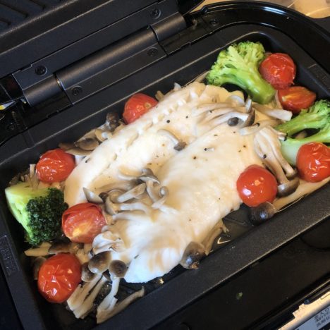 先日購入した焼き芋メーカーも使ってみました。コストコ購入品のティラピアを野菜と一緒にメーカーにサンドしてみました