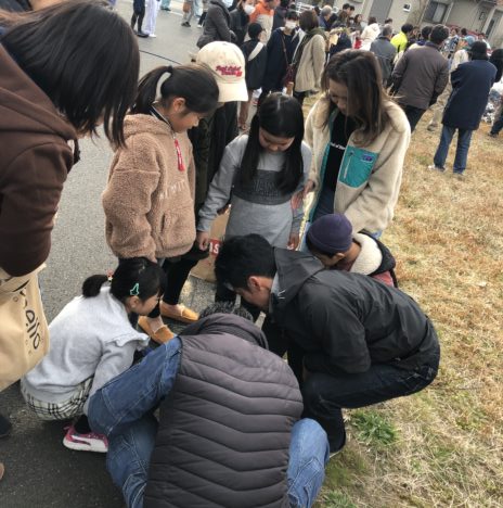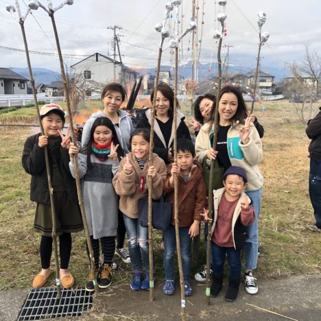 朝トレして午後からどんど焼きへ、久しぶりに三姉妹が揃ったよ。 ひょっこりはんもいるけど…