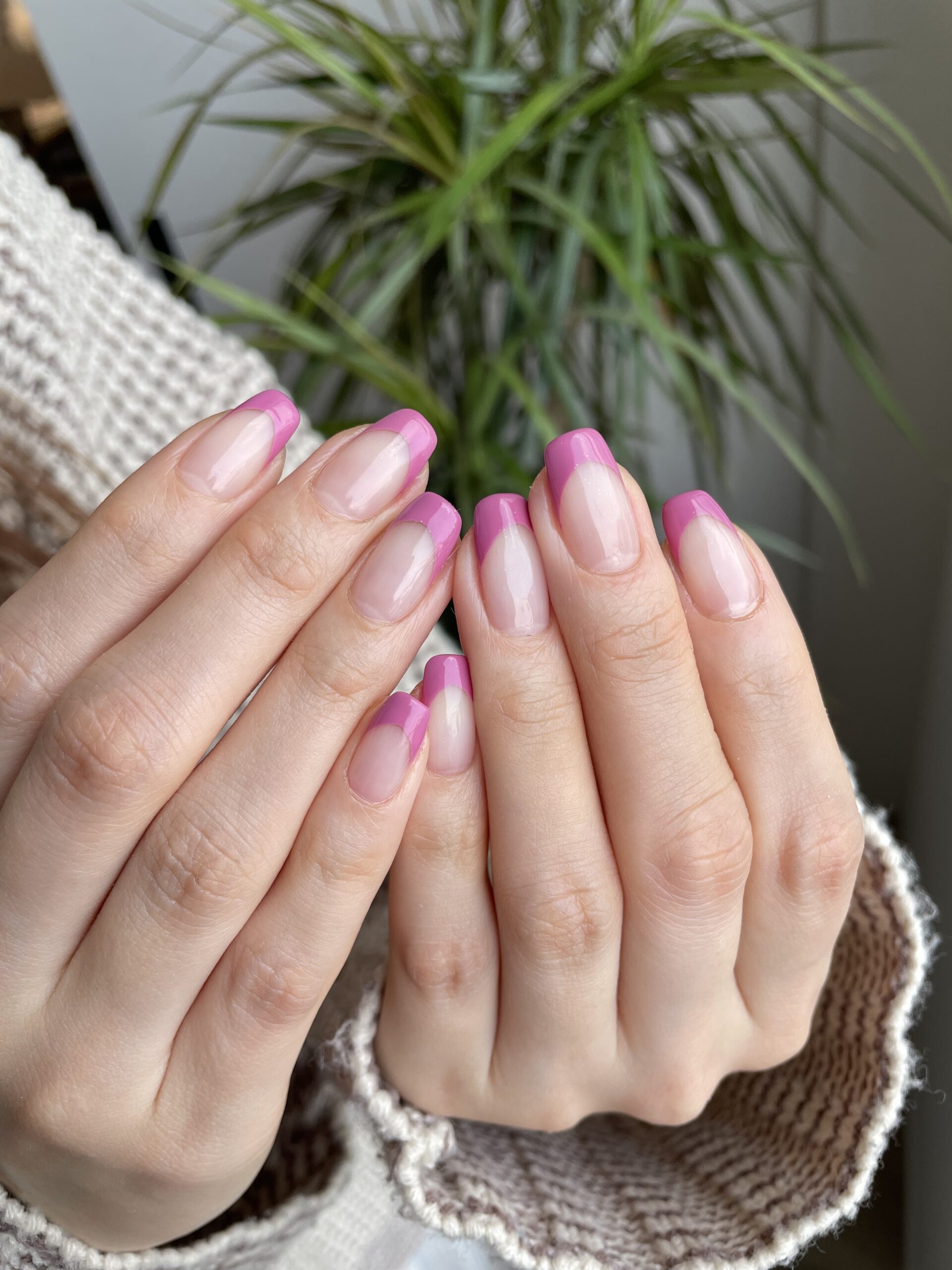 今日のオススメネイルは綺麗な春カラービビットピンクでシンプルフレンチ💅 手が綺麗に見えます。 指先から生まれる心の安らぎ❤️