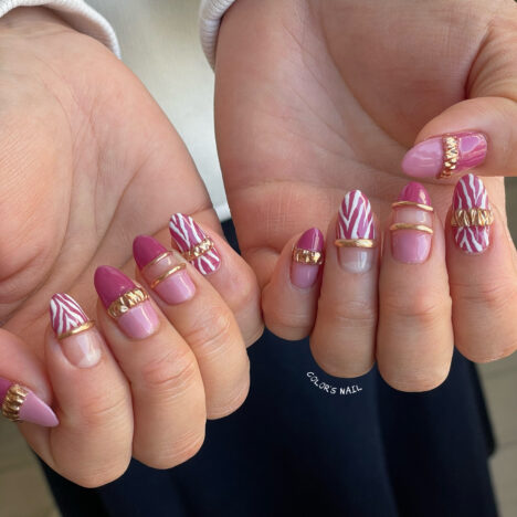 今日のオススメネイルは💅 ピンクのzebra🦓✖︎たくさんのリング💍 豪華でした✨ 指先から生まれる心の安らぎ❤️