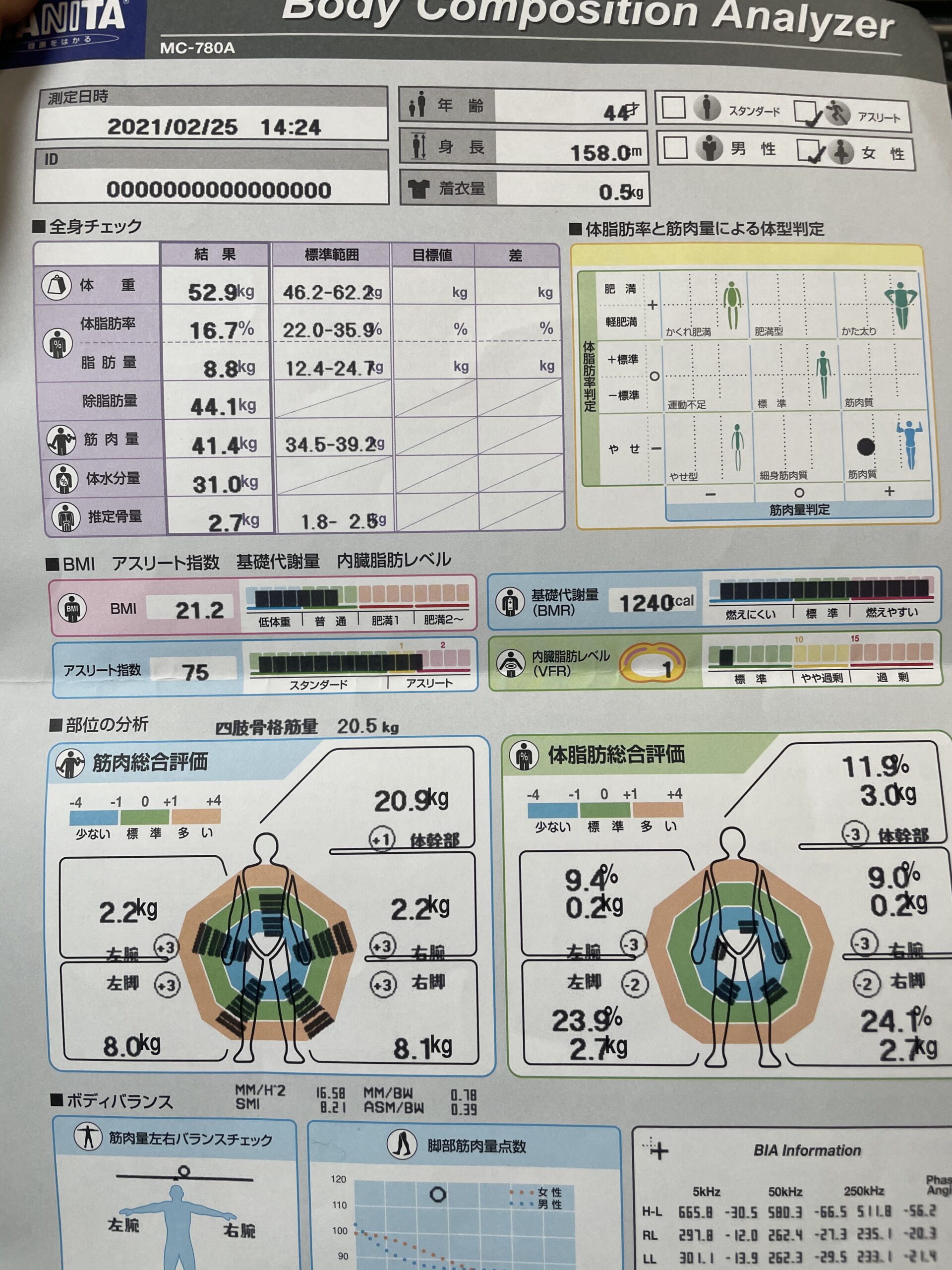 昨日の測定結果です。 今はたくさん食べて筋肉を増やしたいので、体脂肪率もだいぶ増えてます。 減量の時にキツイので増量中でもあまり体脂肪が増えない様にバランス良く食べる事を心がけています。