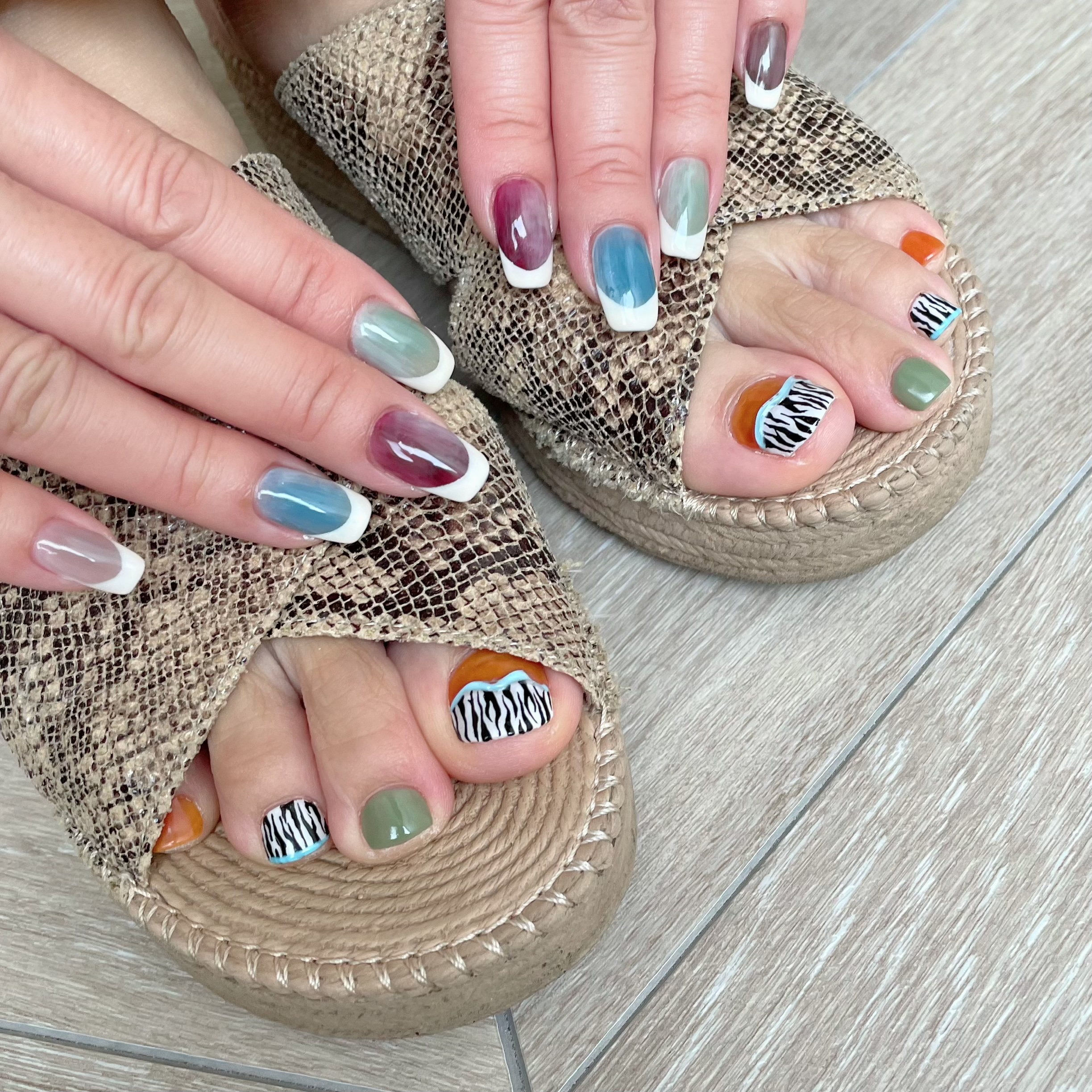 今日のオススメネイルは💅お客様の持ち込み画像を描きました。 綺麗な秋のくすみカラーを合わせた個性的なデザインでした。 指先から生まれる心の安らぎ❤️