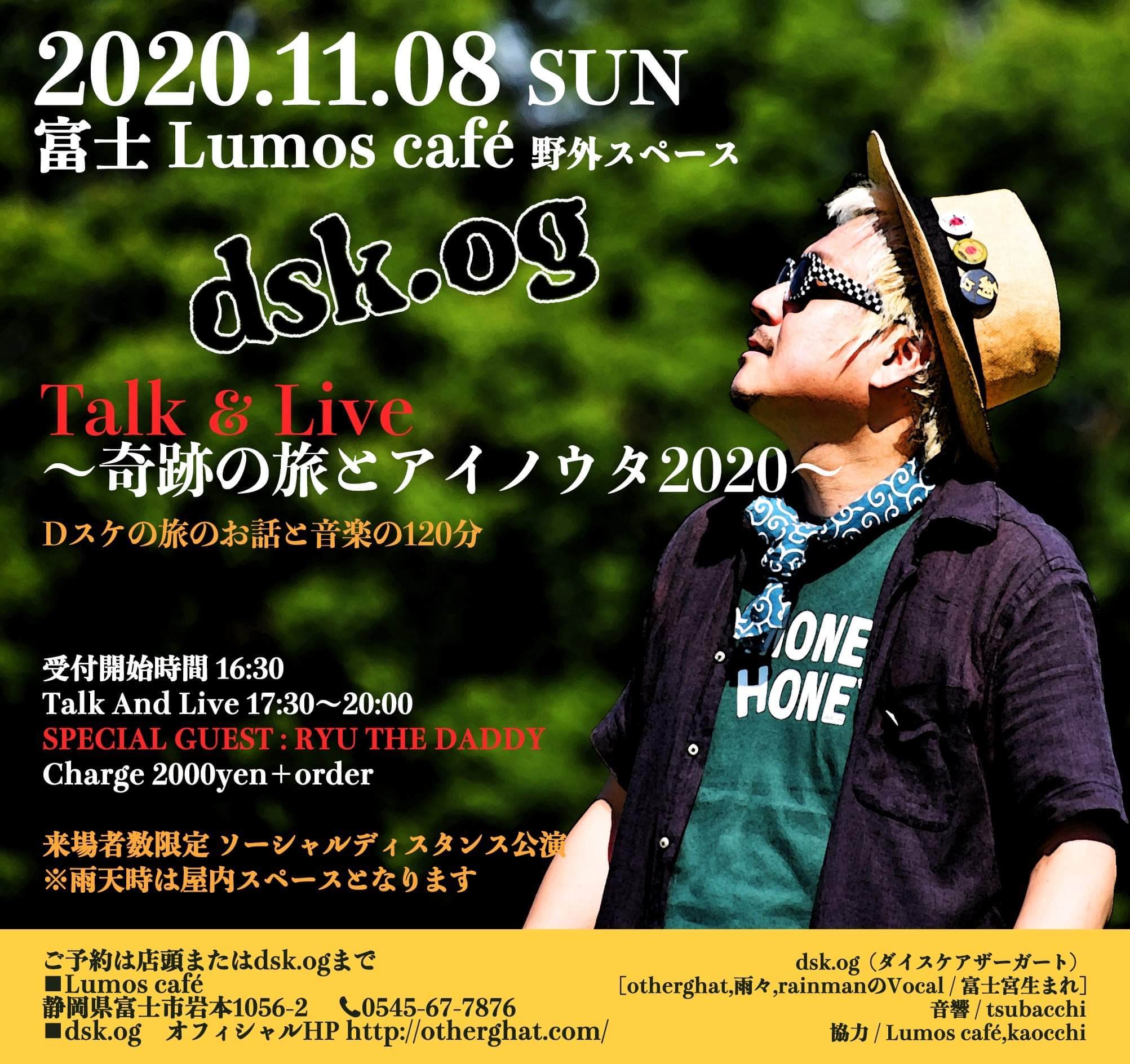 昨夜は岩本山のLumos café さんの野外スペースへdsk.og のTalk&Liveに行って来ました。