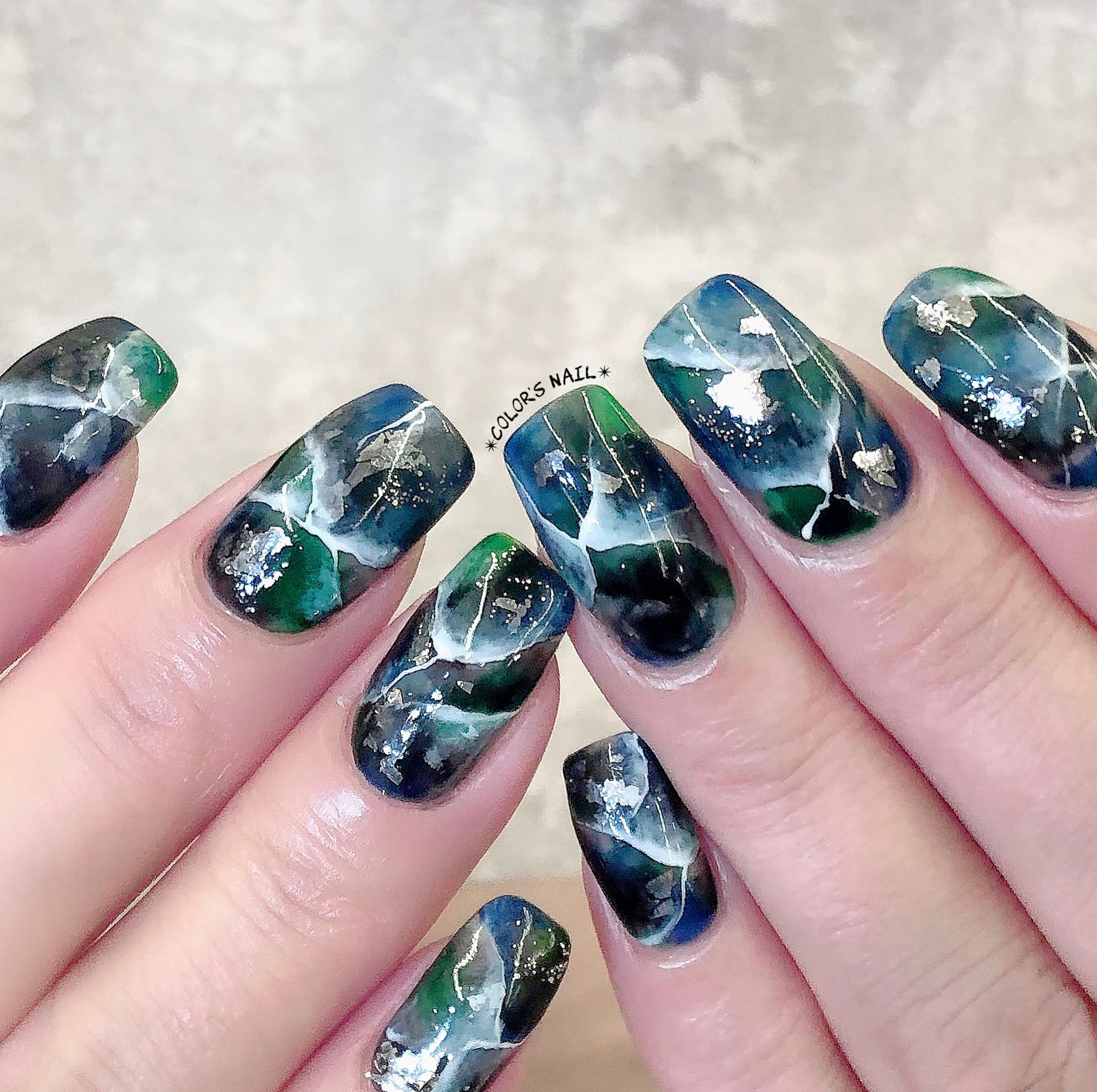 今日のオススメネイルは💅10本豪華に天然石アートをしました✨ 綺麗でカッコ良かったです🎶 いつもありがとうございます。 指先から生まれる心の安らぎ❤️