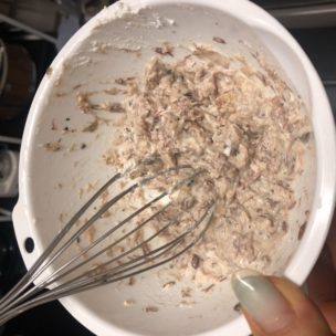 今朝はサバ缶ディップを作って食べました。 サバ缶とカッテージチーズと塩胡椒とオーツミルクを泡立て器で潰して混ぜるだけ🎶 朝のサバ缶は脂肪燃焼しやすいそうです✨