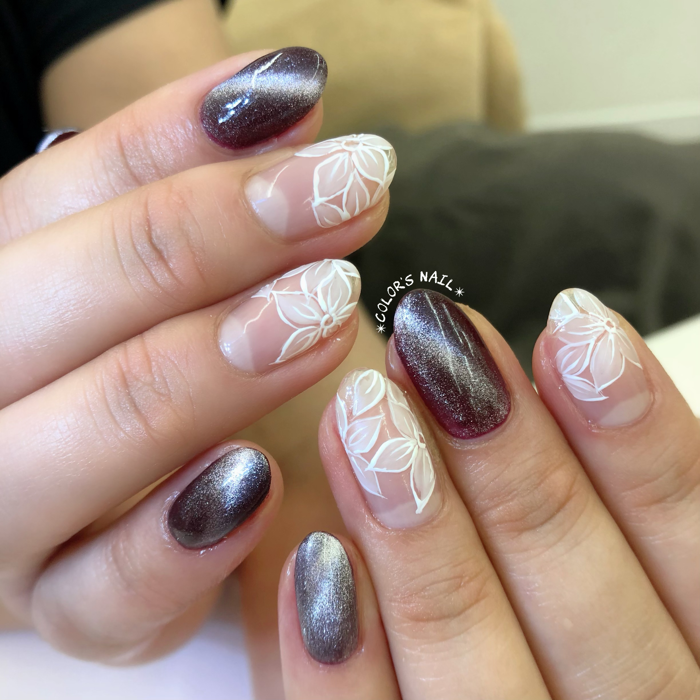 3つ目はボルドーマグネット✖︎マットフラワー フラワーは中だけマットで周りは艶々仕上げです。