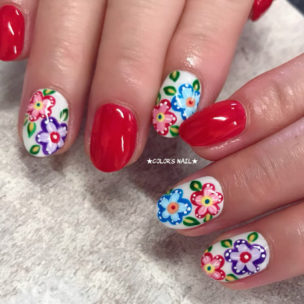 今日のオススメネイルはお客様の持ち込み画像を手描きした『紅型ネイル』です✨