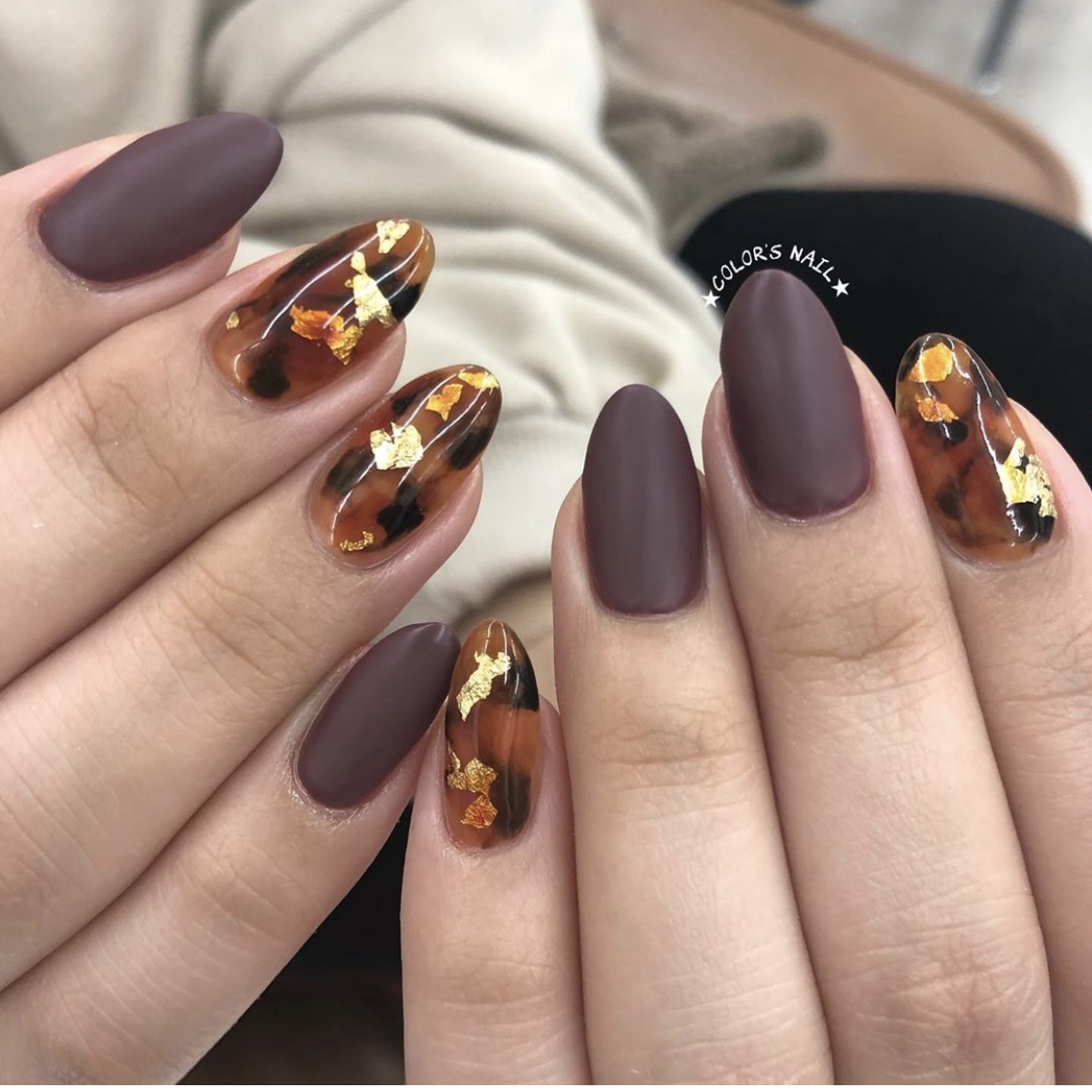 今日のオススメネイルは💅艶々鼈甲とマットのコラボネイルです✨指先から生まれる心の安らぎ❤️