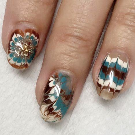 今日はジェル検定初級向けのピーコックネイルをデモしました。