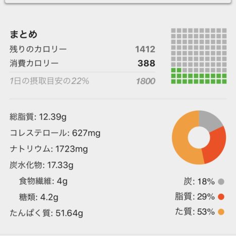 ↓↓↓ちなみにこのマクロ管理のごはんはこれです。こんなにボリュームたっぷり食べて388kcal
