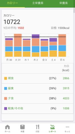 ↓↓↓1週間単位でもマクロバランスを確認出来ます。