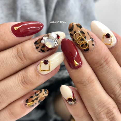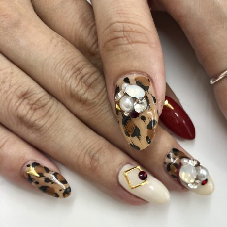 今日のおすすめネイルはレオパード×ビジューネイルです。