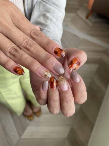 今日のおすすめネイルは💅またまた推しの鼈甲ネイル✨奥行き感とクリア感が綺麗でした🎶 指先から生まれる心の安らぎ❤️