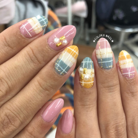 今日のオススメネイルは💅 秋冬人気のチェックネイルです。 柔らかい秋カラーで素敵✨