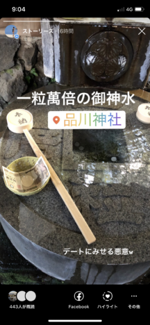 ふと見ると友達がInstagramストーリーに品川神社を載せていました。↓これね!直ぐにスクリーンショットして…