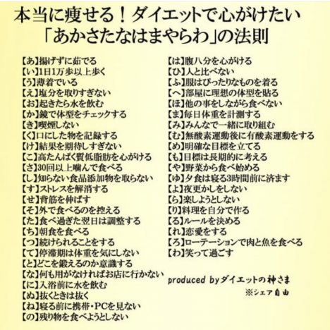 Instagramで見つけたダイエットの法則が面白かったのでシェアします。その通りですね〜