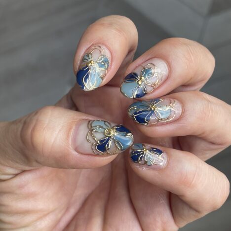 やりかけだった自分のネイルを完成させました✨ お正月に間に合って良かった。 右手も左手で頑張って描いたわ〜  久しぶりの豪華