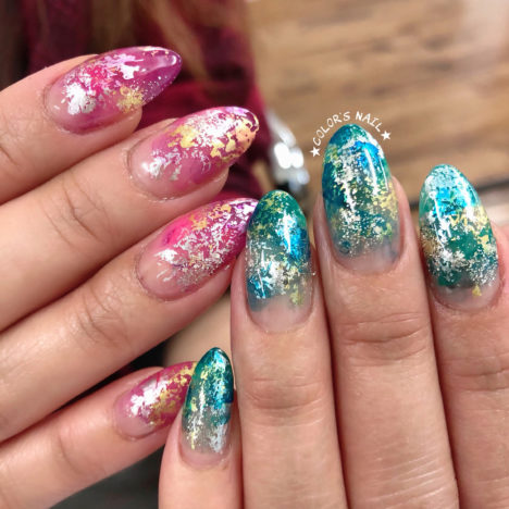 今日のオススメネイルはミラーファイルとたらし込みリキッドのアシメネイルです💅