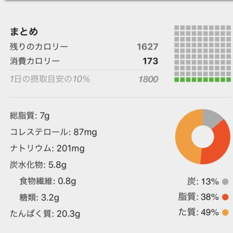 ③これで10個作ったので、1個173kcal・脂質7g・炭水化物5.9g・たんぱく質20.4gでオリジナルのメニューを登録しておきます。