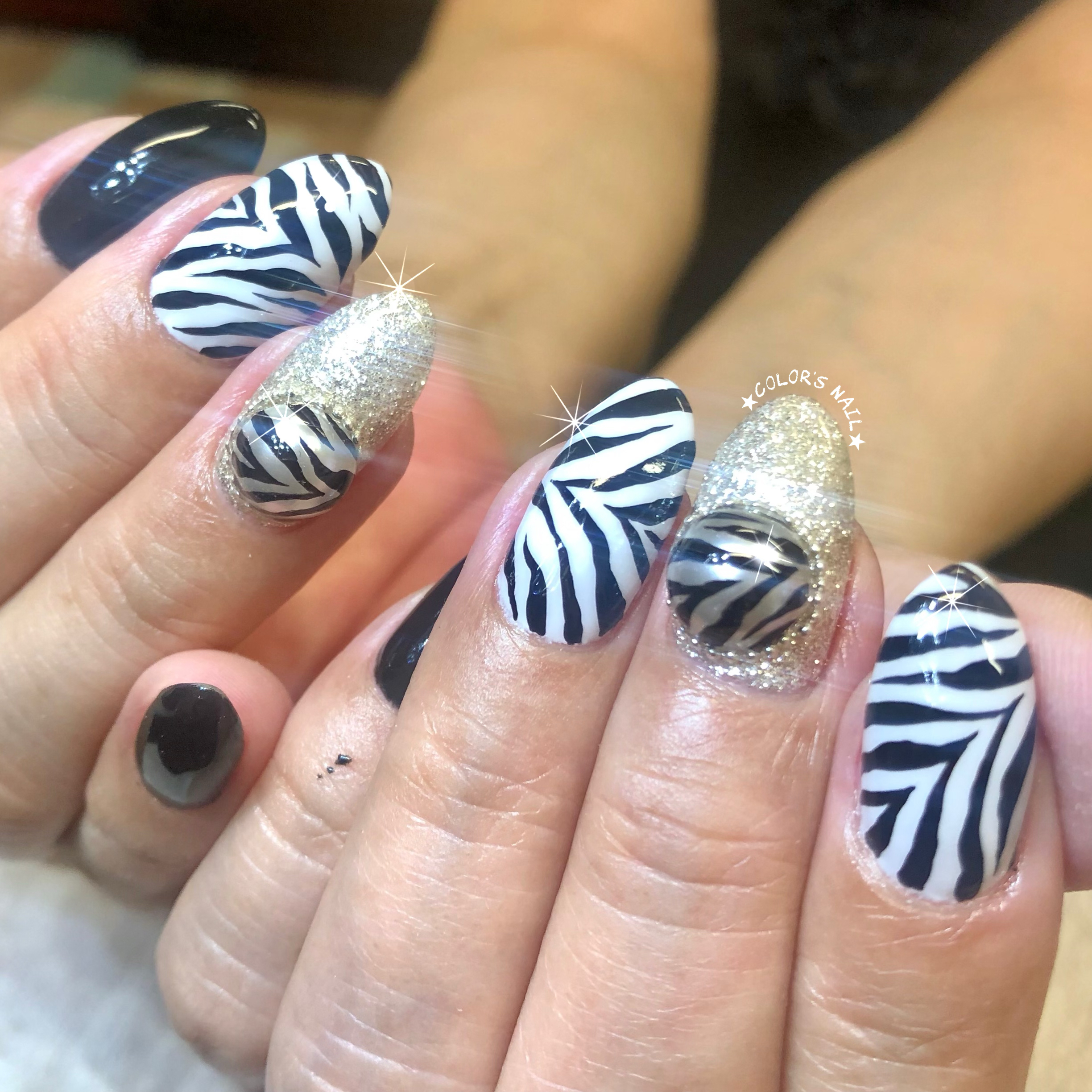今日のおすすめネイルはお客様のオーダーゼブラネイルにワンポイントでBIGパールをのせて、パールの上にもゼブラを描きました。指先から生まれる心の安らぎ❤️