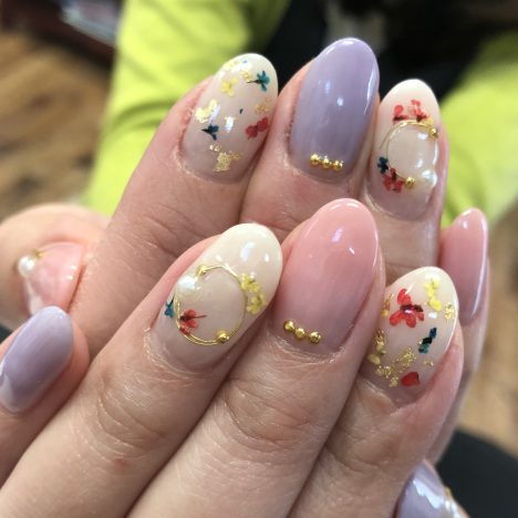 今日のおすすめネイルは入学式にピッタリな押し花ネイルです。