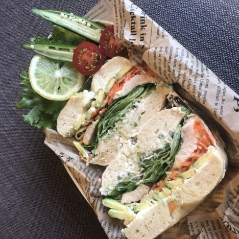 今朝はそれをソイプロテインベイグルにサンドして『わんぱくサンド』を作りました。