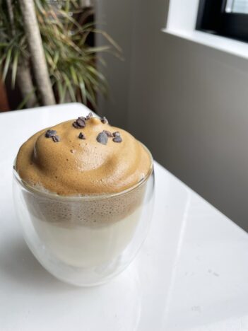 pallet caféでは甘酒ダルゴナコーヒーが人気です✨ ネイル中に飲めますよ。
