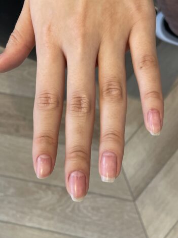 検定試験前にモデルさんの人差し指の爪が折れてしまいました。