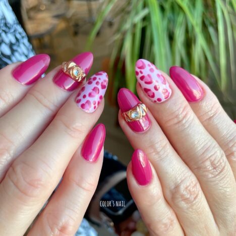 今日のおすすめネイルは💅 マゼンダ✖︎レオパード✖︎リングネイルです。 元気が出るビビットカラーですね🎶 指先から生まれる心の安らぎ❤️