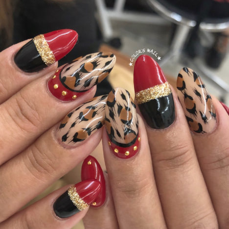 今日のオススメネイル💅 レオパードと赤黒のクールなネイルです🎶