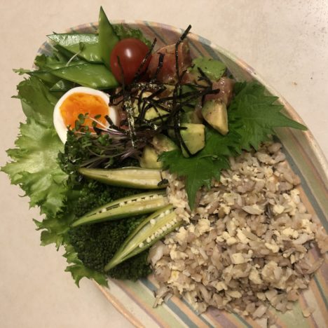 私のディナーは、ご飯の代わりに『高野豆腐のカサ増し玄米』