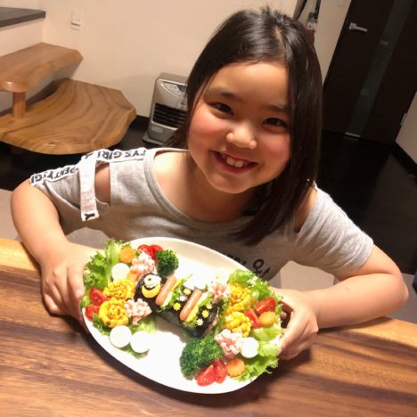 自粛中お出掛けしないで楽しめる子供の日という事で、マルセン屋部海苔店の海苔で『海苔巻き鯉のぼり🎏』作りました🎶