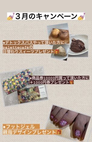 ⦿3月来店時にフットのご予約を入れてくれたお客様