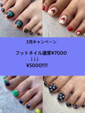 フット基本料金通常(ワンカラー込)¥7000→¥5000!!