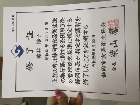 食品衛生責任士 修了しました!