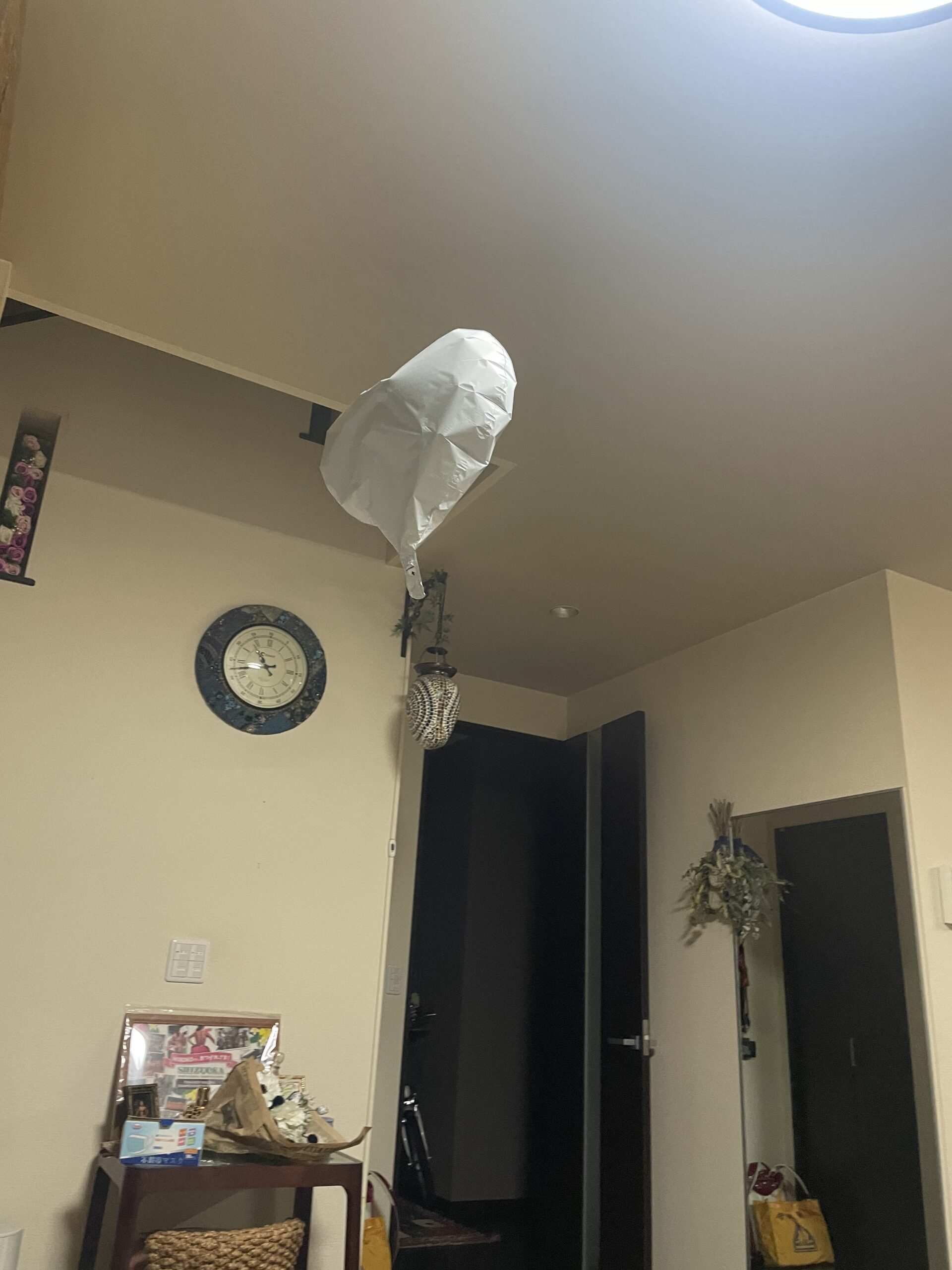 オープンの時にいただいたバルーン🎈5ヶ月も上に。。。 ヘリウムのバルーンって1週間くらいしか持たないと思っていたけど、150日も浮いてるって驚きです✨ そんなに持つのは何でなの?
