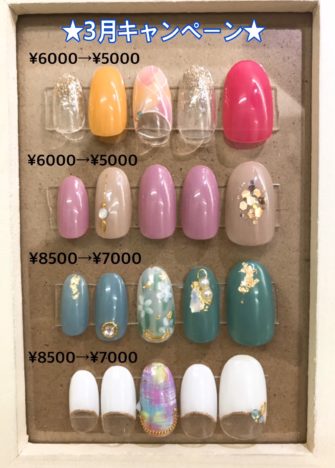 久しぶりの定額ネイルです。3店舗でデザインが全て違います。カラーチェンジもオッケーなのでお楽しみ下さいね。