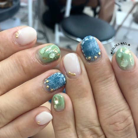 オススメネイルは デニムと水滴のようコラボネイル💅