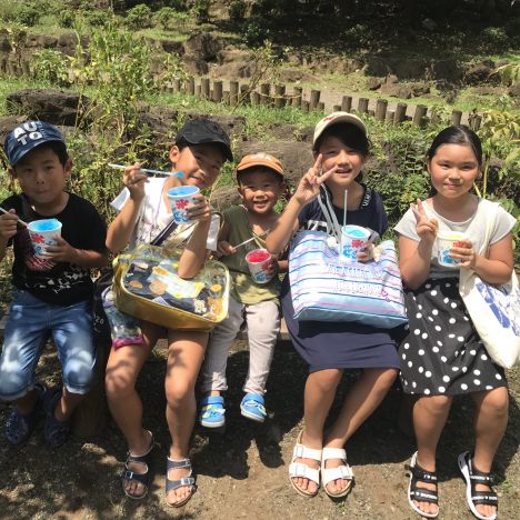 子供達も水着を持ってって全力で遊んでましたよ。 かき氷を食べてご機嫌🍧