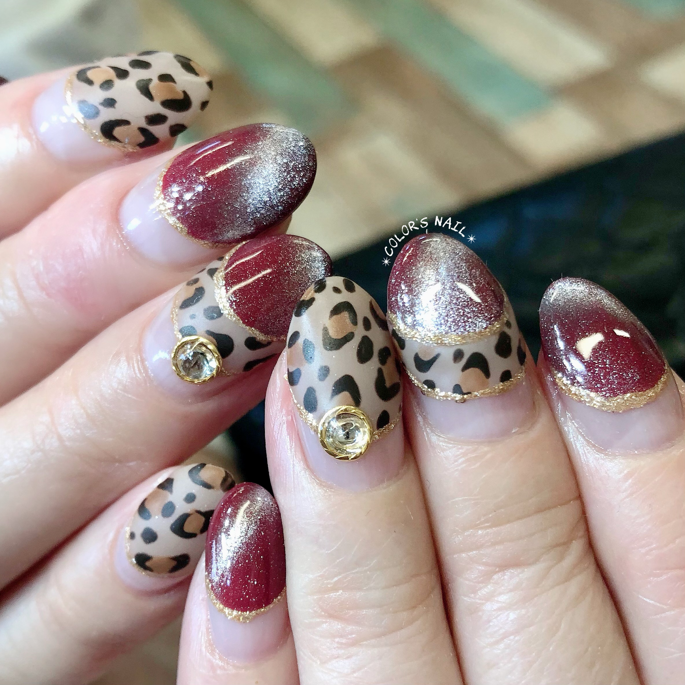 今日のオススメネイルはマットレオパード✖︎艶々ギャラクシーのコラボネイルです。 アニマルの上だけマット仕上げなので、質感の違いを楽しめます🎶 指先から生まれる心の安らぎ❤️