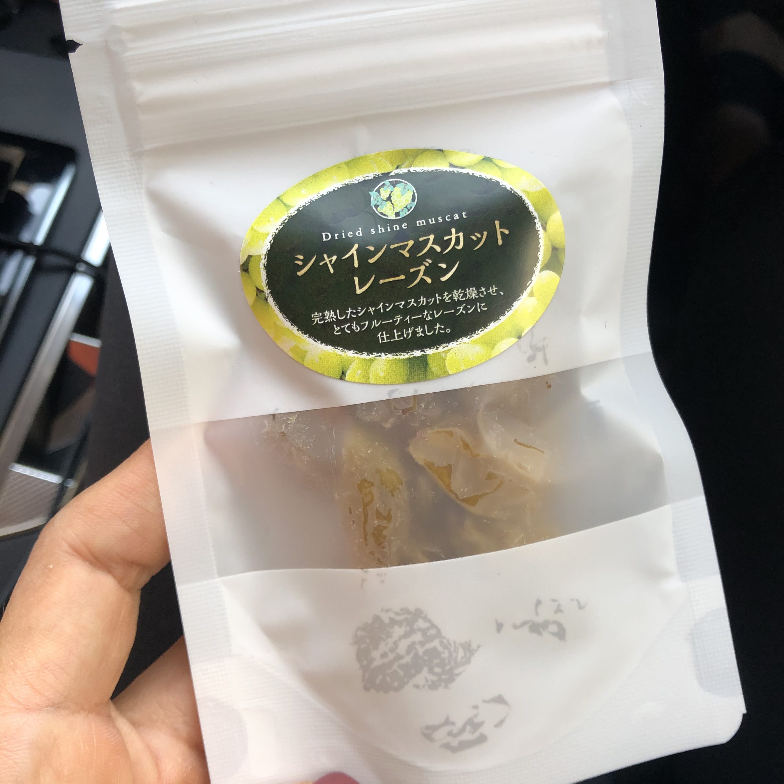 シャインマスカットのドライフルーツって珍しいでしょ。私もお味見✨ 完熟したお味でんまっ❤️