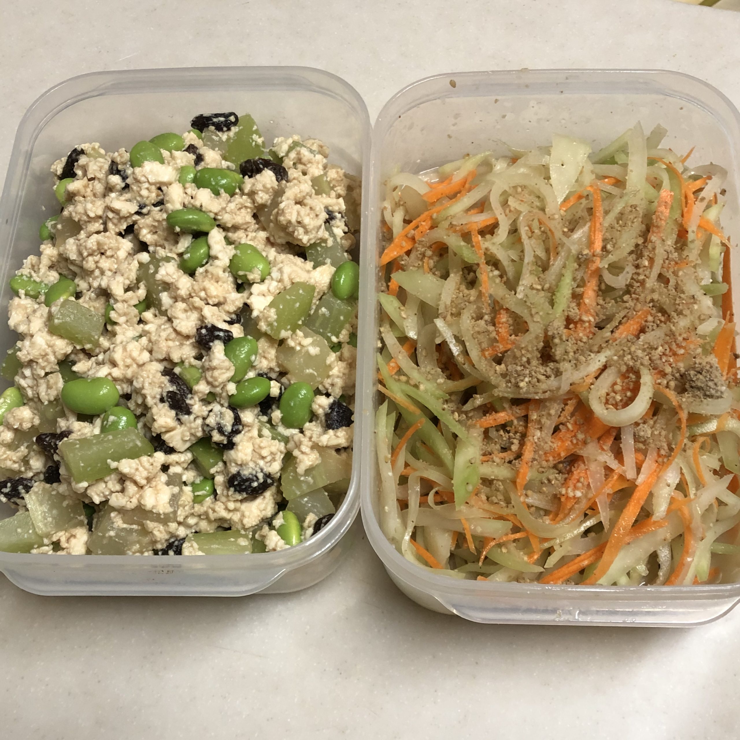 青パパイヤの白和えと青パパイヤのなますです。 発酵調味料で優しい味に出来ました。