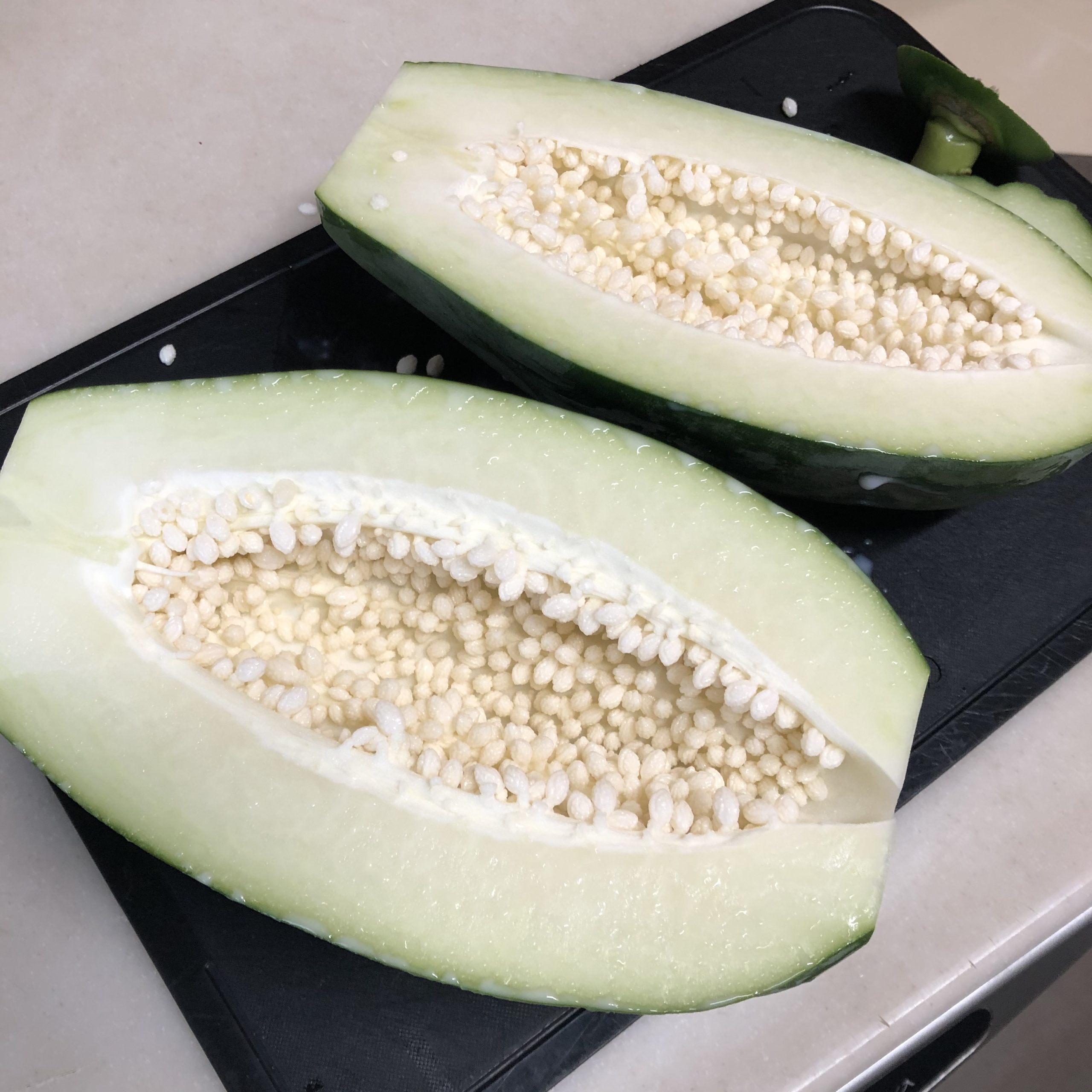 青パパイヤって初めて調理しました。切ったらこんな感じで断面が可愛かった✨