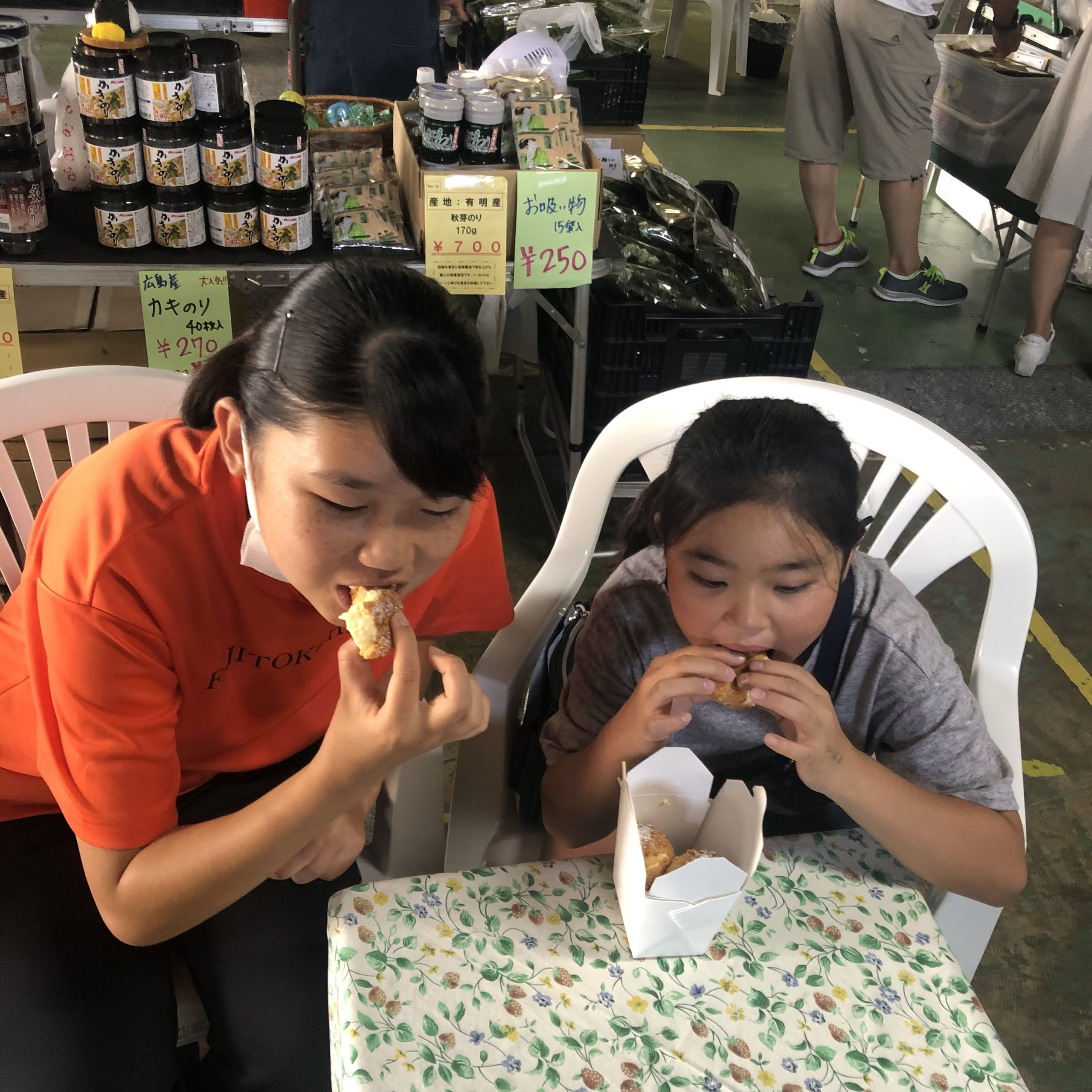 杉山フルーツさんの粛々マルシェも娘2人喜んで光月堂さんのスイーツを〜 食べ方😂