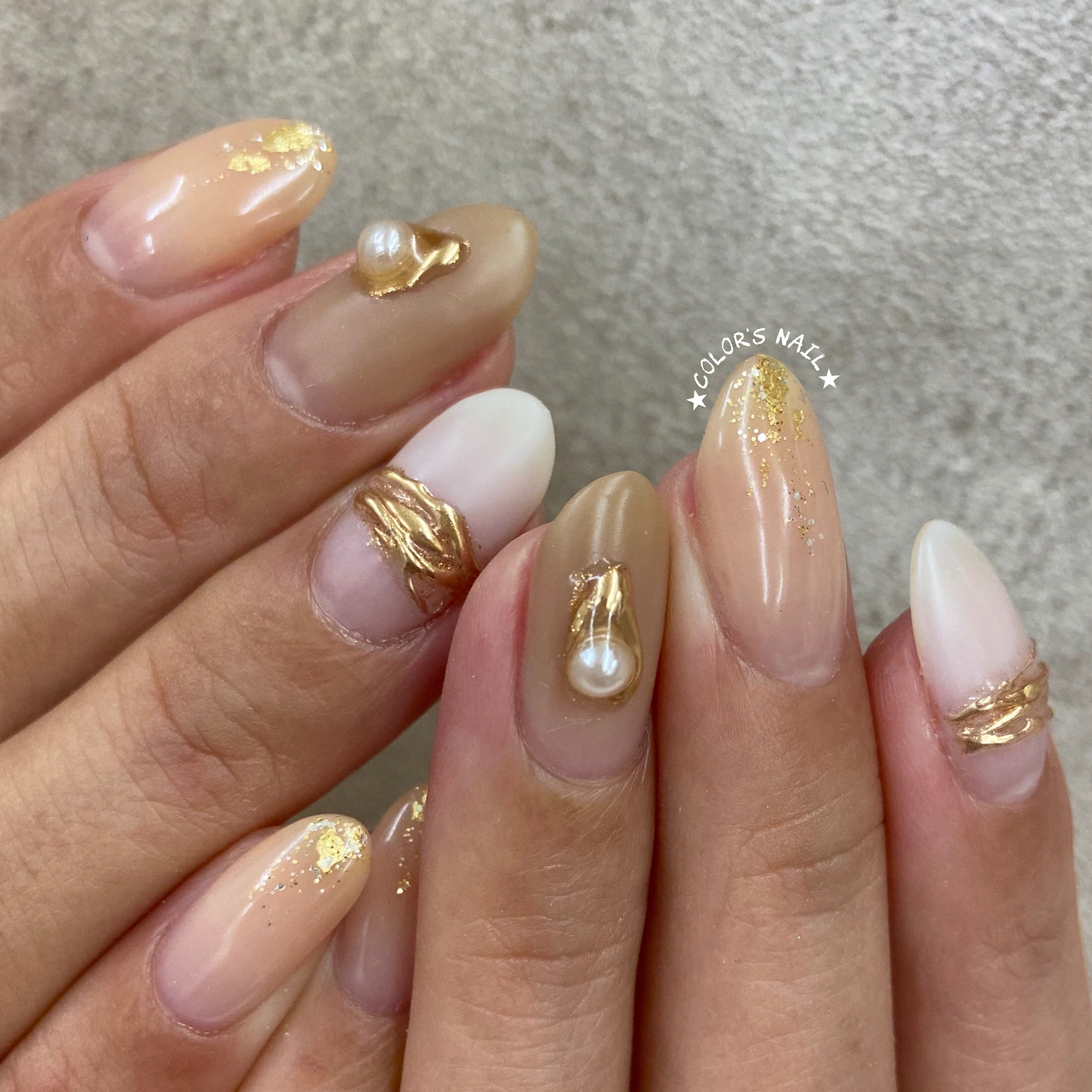 今日のオススメネイルは💅ジュエリーネイル・アクセサリーネイルと呼ばれる手描きのアクセサリーに見えるアートです。サイズも形も色も自由なオリジナルなアクセサリーになります。 指先から生まれる心の安らぎ❤️