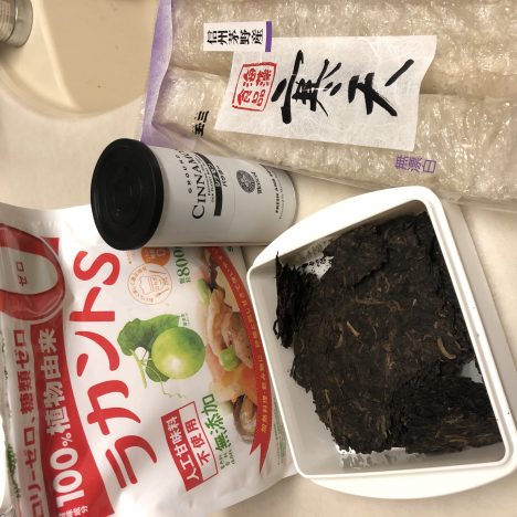 材料は 普洱茶・ラカント・寒天 、3つだけです。