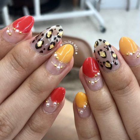 天然石風なニュアンスネイルも秋カラーで