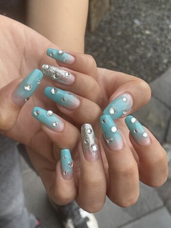 今日のおすすめネイルはティファニーブルーのジェルネイルにクリアストーンを置いた、涼しげなネイル💅 指先から生まれる心の安らぎ❤️